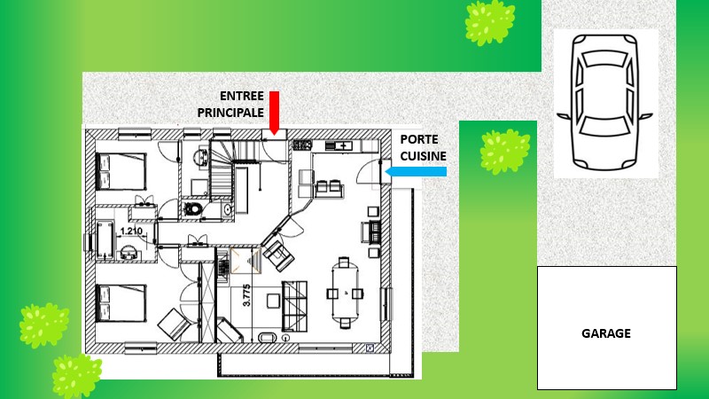 Pour moi, l’entrée est le point d’accès principal. Après, lorsqu’on arrive avec les bras chargés de courses, il y a l’option porte de cuisine. Merci pour tous tes conseils.