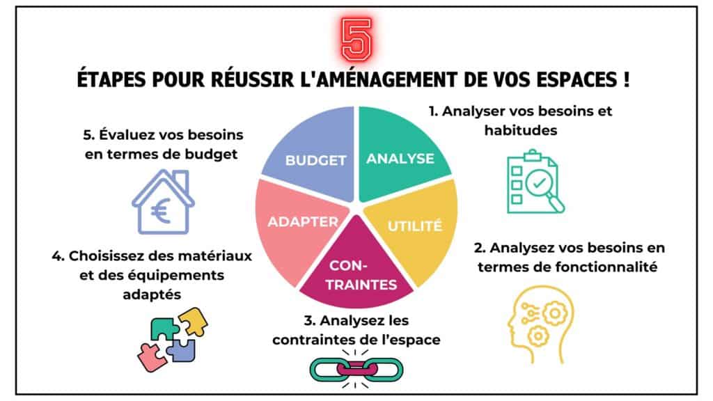 Une analyse préalable permettra de mieux comprendre les contraintes et les besoins spécifiques à prendre en compte pour chaque membre de la famille ou utilisateur de l’espace.