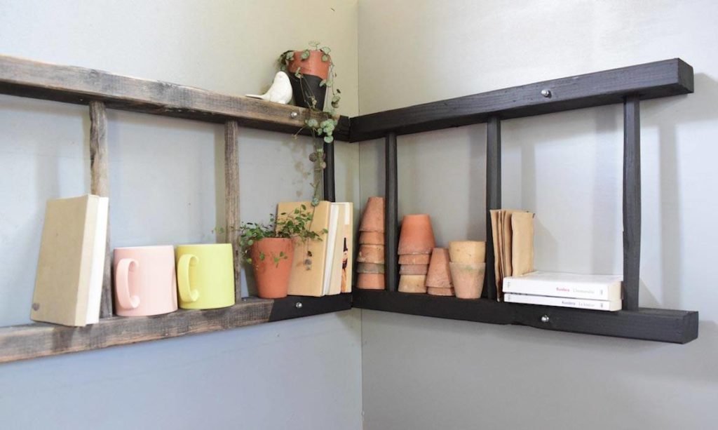 • Étagères Vintage : Transformez une vieille échelle en une étagère originale. Ajoutez des planches en bois pour créer des espaces de rangement pour vos objets préférés.